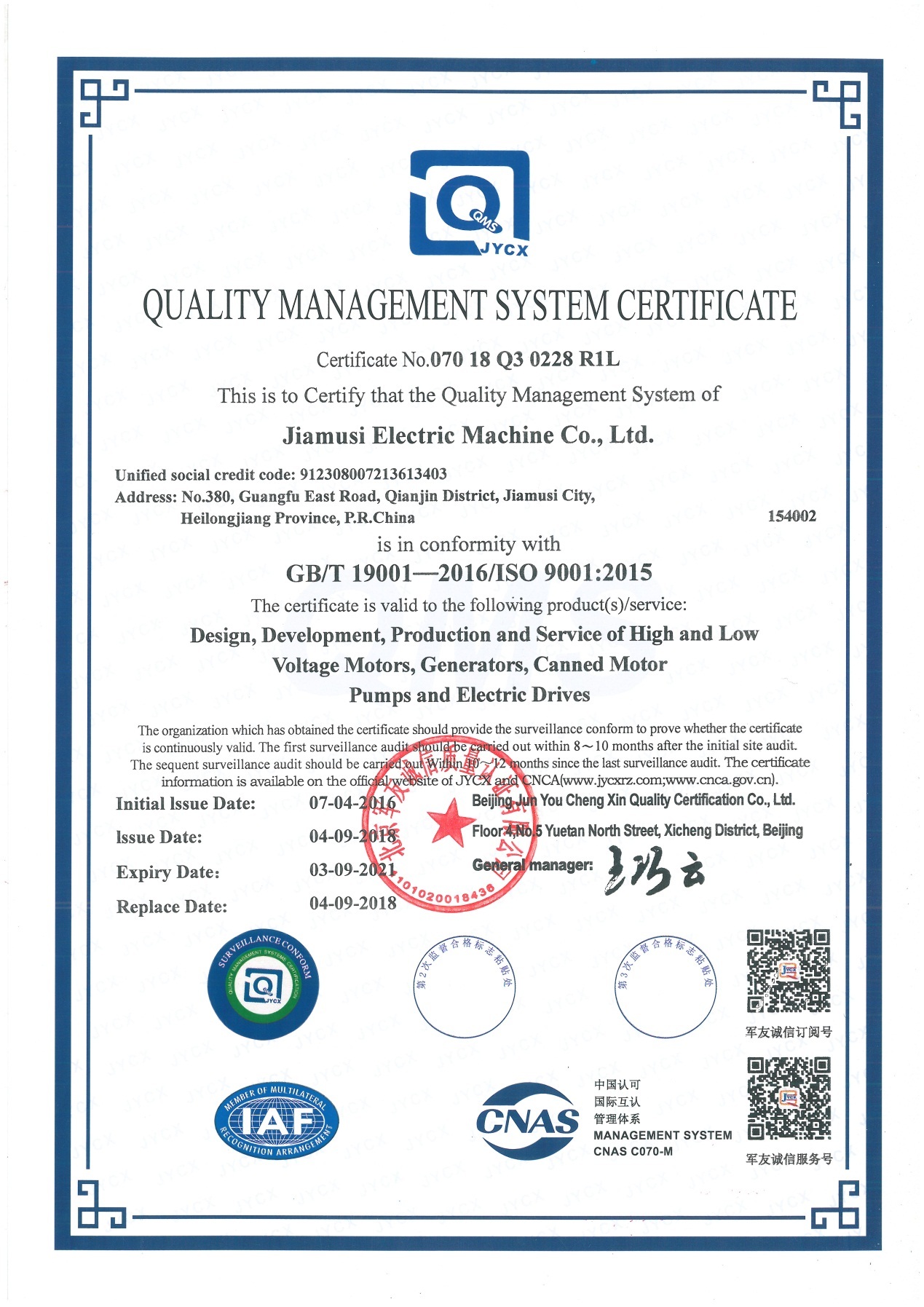 中央第一機(jī)械工業(yè)部佳木斯電機(jī)廠